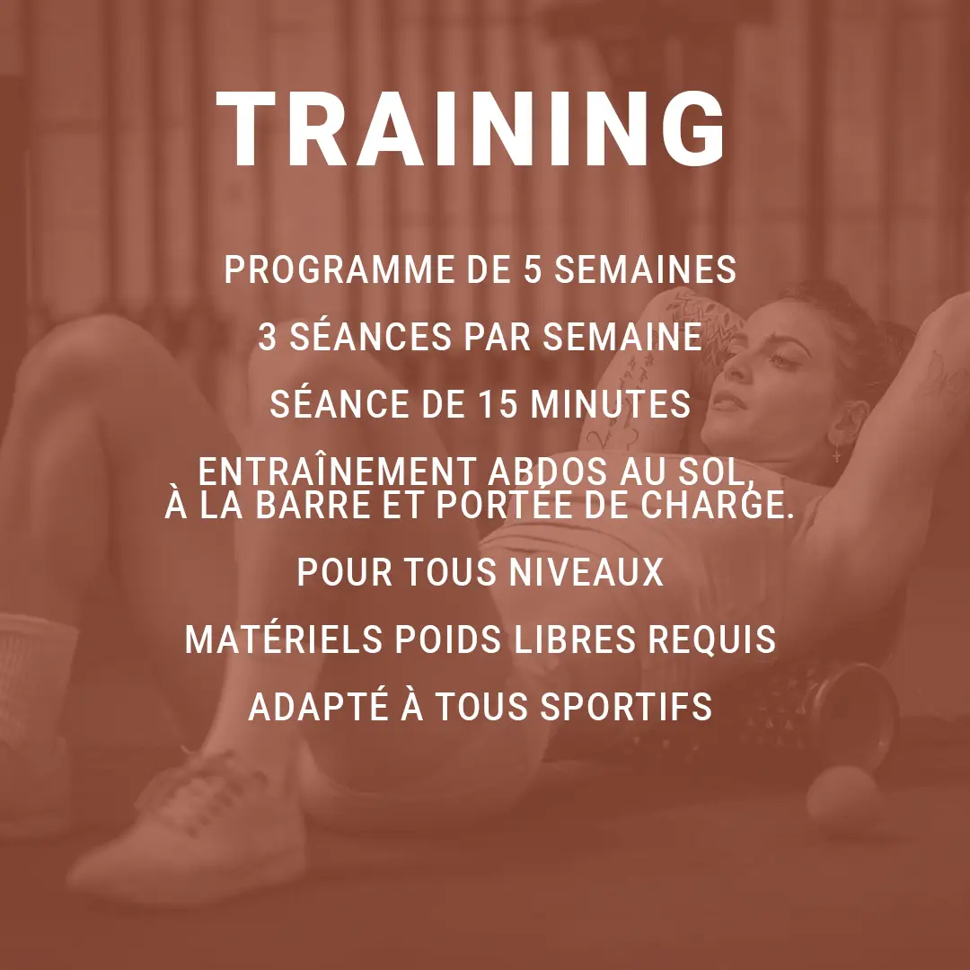 Tu veux un centre du corps plus fort, plus stable et plus performant ? Cette programmation abdos et core sur 5 semaines a été pensée pour toutes celles et ceux qui veulent enfin travailler leurs abdos de manière intelligente. Trois séances par semaine, environ quinze minutes chacune, des variations selon ton niveau et une progression structurée pour renforcer ton gainage, améliorer ton contrôle postural et rendre tous tes mouvements plus solides. Simple, efficace et réellement utile pour ton entraînement.